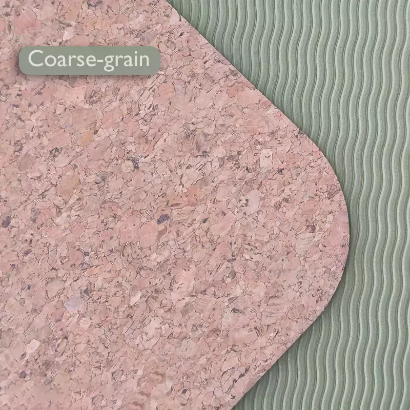 Den naturliga korkstrukturen ger ett underbart utseende och känsla. Stilen och materialet kan anpassas efter dina behov, vilket skapar en unik yogamatta.