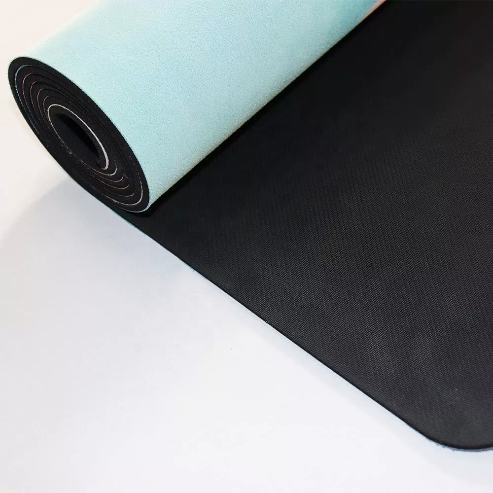 Denna avancerade yogamatta i mockagummi har ett mjukt, absorberande toppskikt av mocka och en robust botten av naturgummi som verkligen greppar golvet. Den avancerade limfria processen innebär inga lukter eller kemikalier. Vi erbjuder den i många storlekar, tjocklekar och former - välj det som fungerar för din träning.